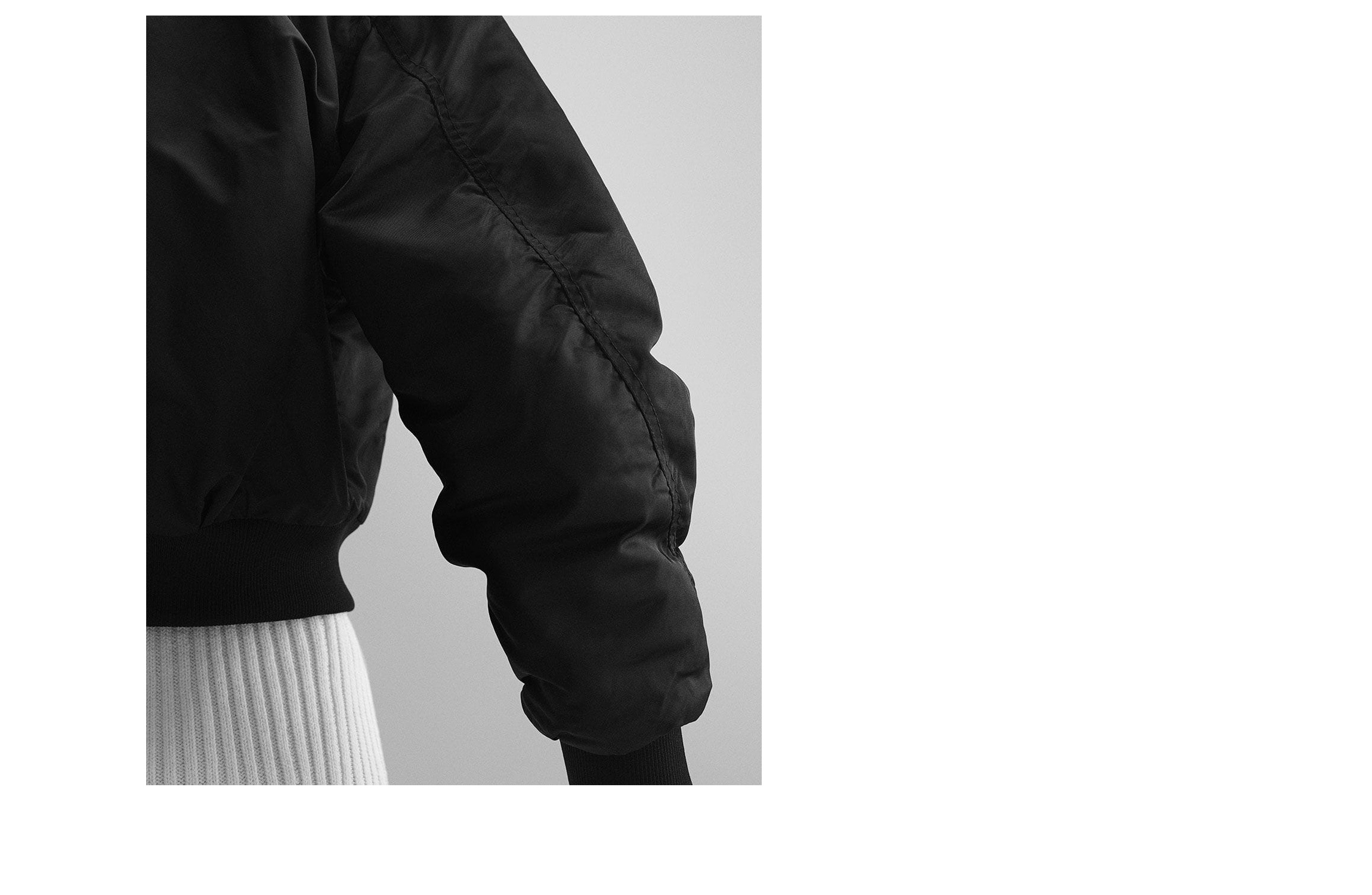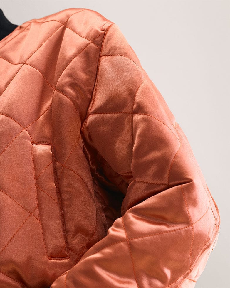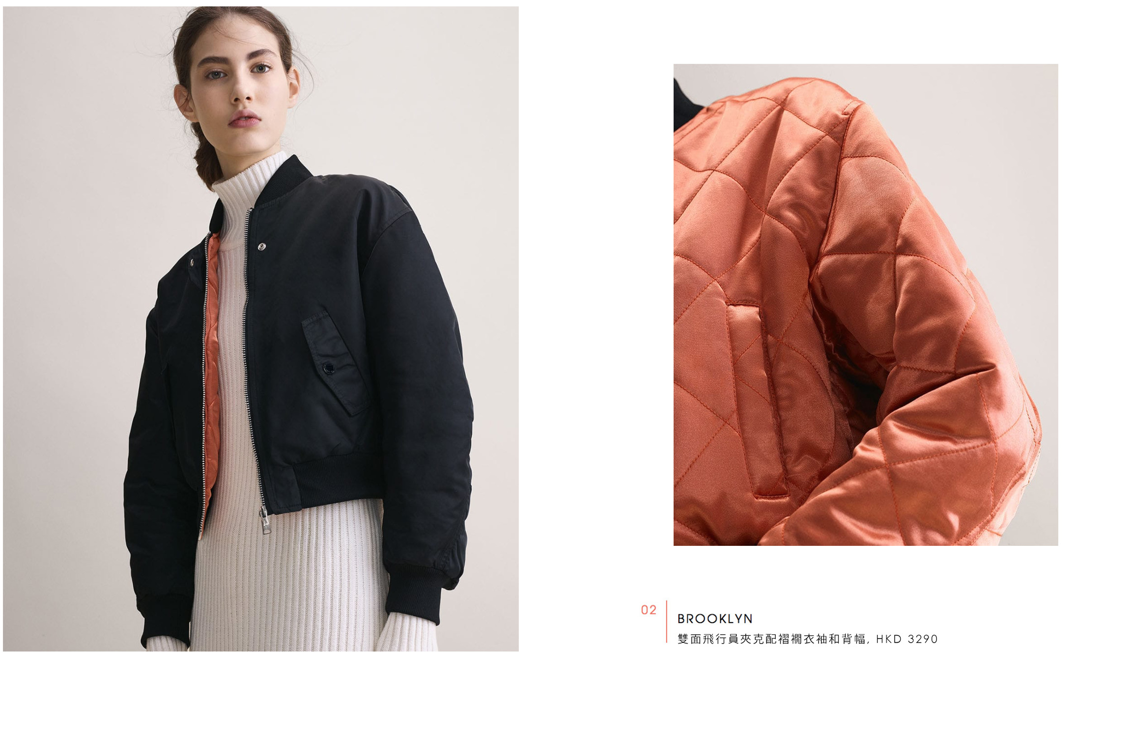 黑色雙面飛行員夾克配以經典橙色襯裡,
