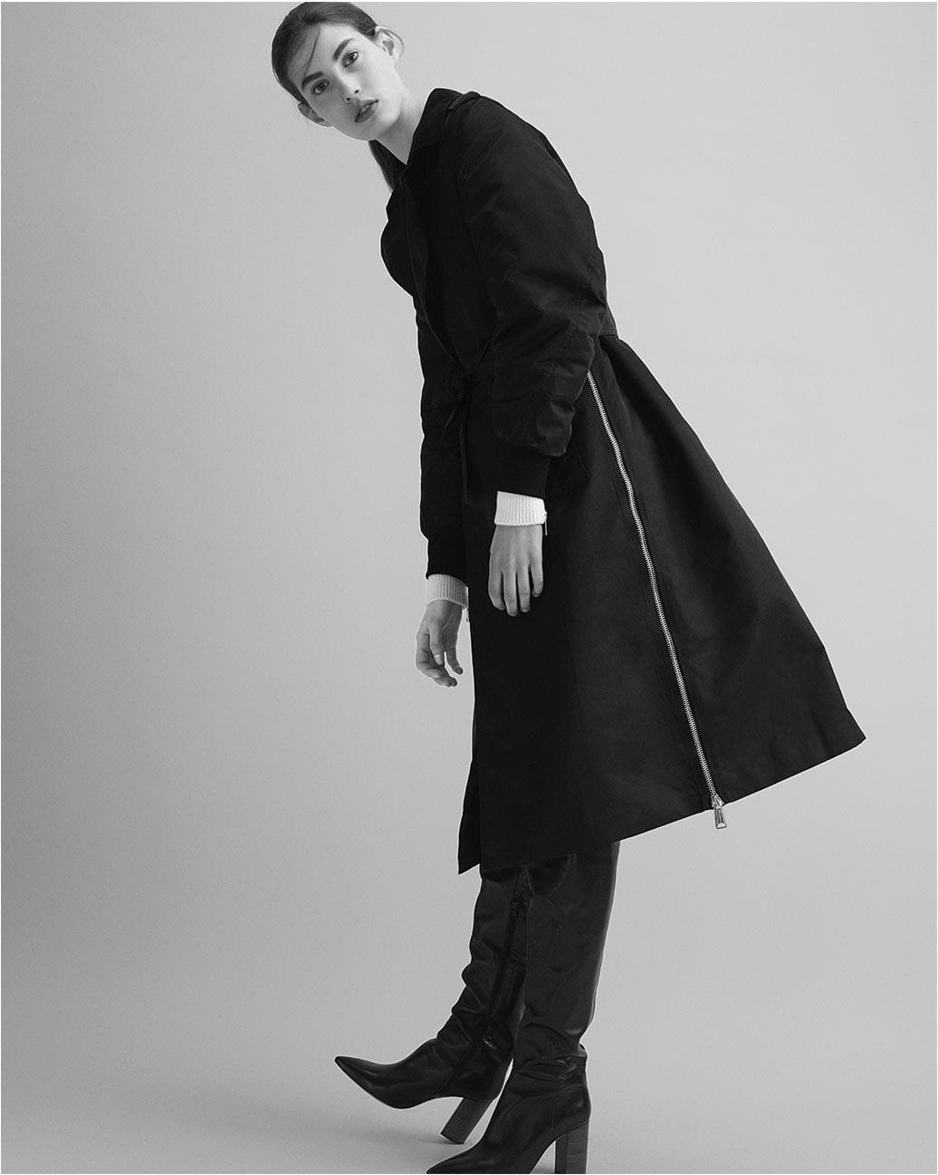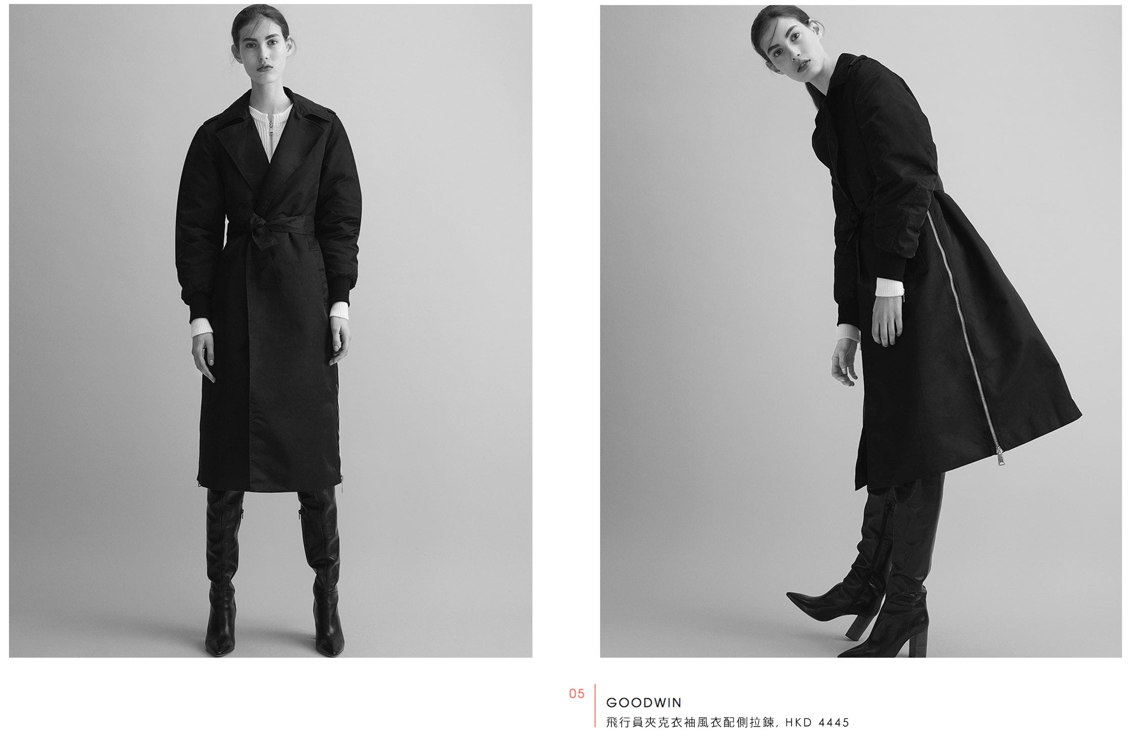 白天穿著的長飛行員夾克,在晚上搖身一變成為風衣,