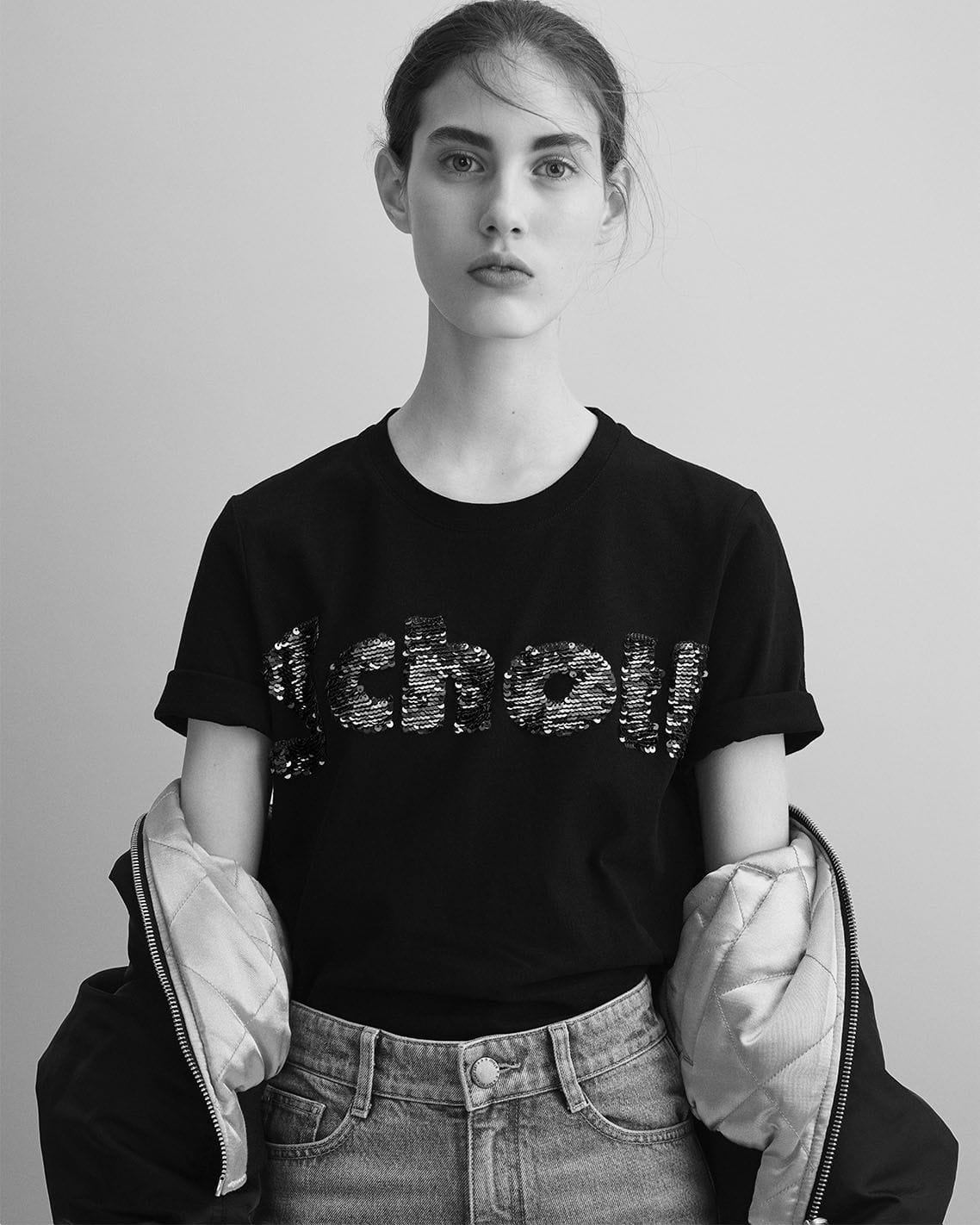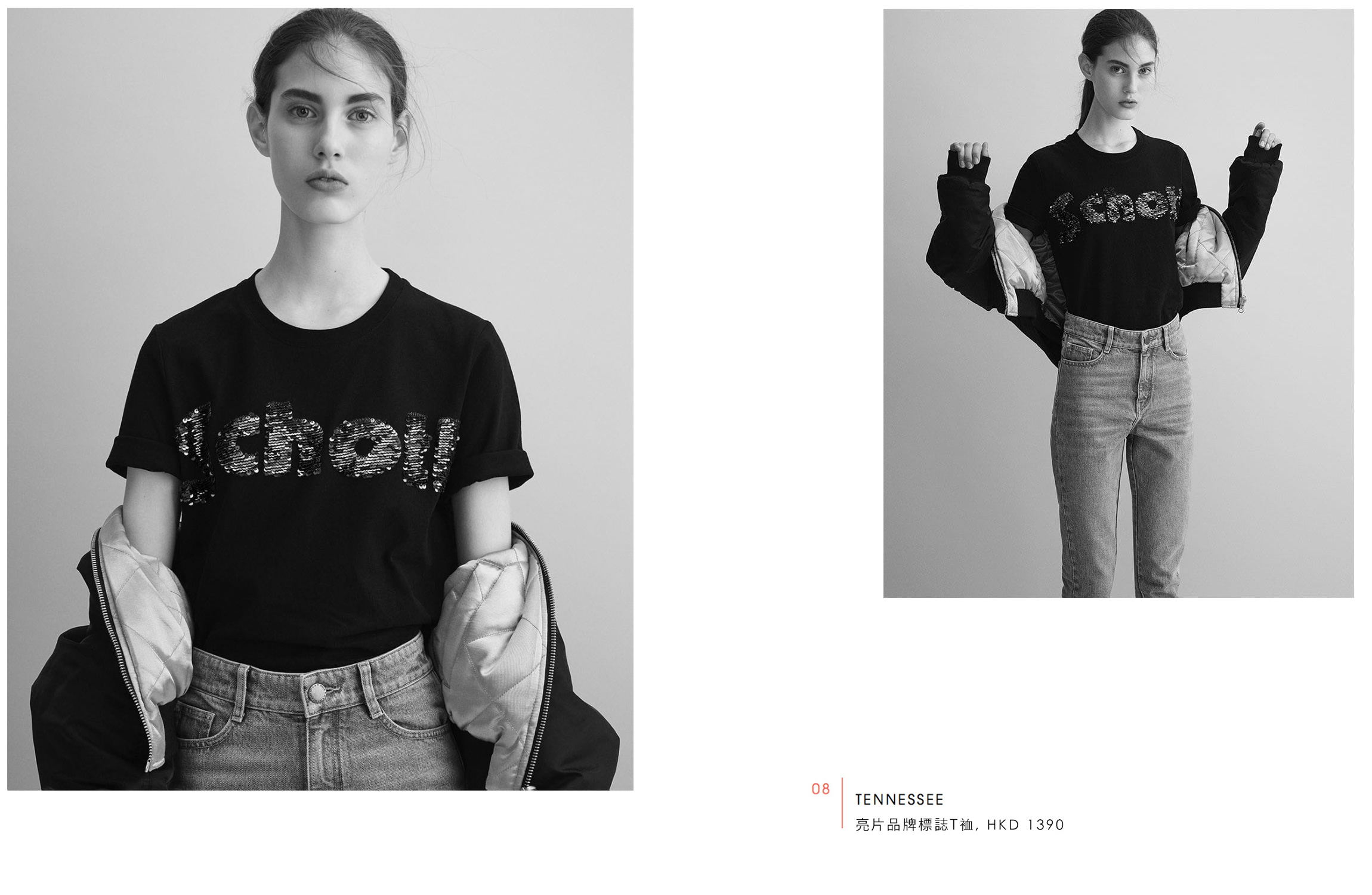 以及印有低調黑色標誌細節的Schott風格寬鬆同色刺繡T裇。